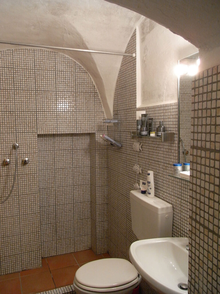 Über dem Schlafzimmer befindet sich die vollständig eingerichtete Wohnküche. Außerdem gibt es einen ausgebauten Souterrain – ebenerdig zur Parallelgasse und mit separater Eingangstür – mit Bad und Sitzgelegenheiten sowie Daybed und deutschem TV. Man könnte diesen Raum als „unabhängiges“ Apartment bezeichnen, allerdings mit internem, steilem Treppenaufgang zum Rest des Hauses.